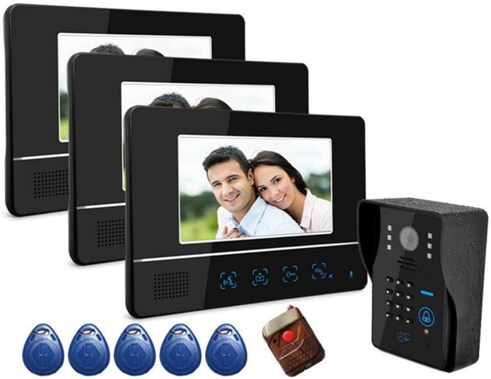 Videocamera per campanello wireless, Videocitofono Cablato Da 7 Pollici Campanello Villa Edificio Citofono Password Scheda Magnetica Telecomando Sblocco Campanello Elettronico,Facile da installare